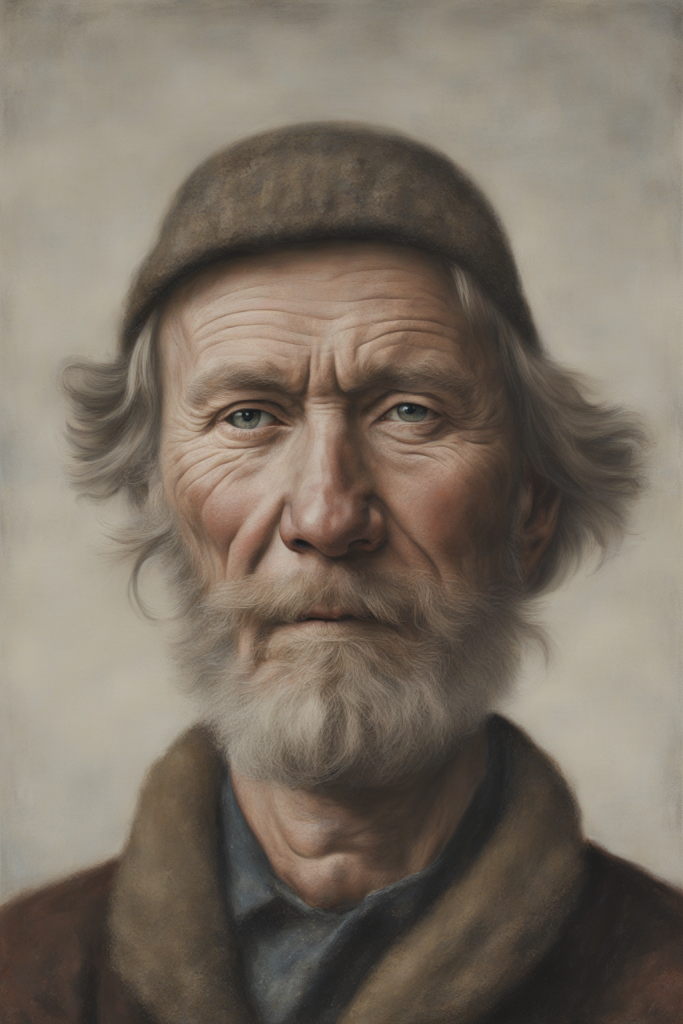 By using the prompt «A portrait of a Norwegian man» three times in a row with a random seed, Stable Diffusion generated three almost identical images of an old and slim man.